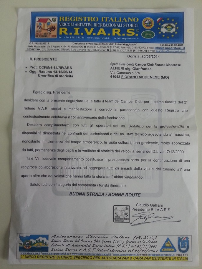 che, se riconosciuto come: " Originale nell'essere Camperista" ,
